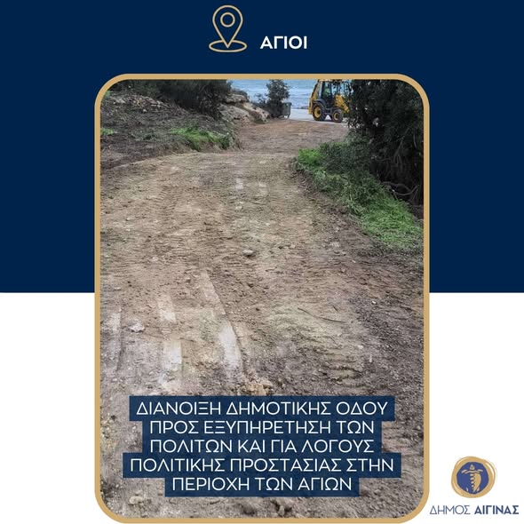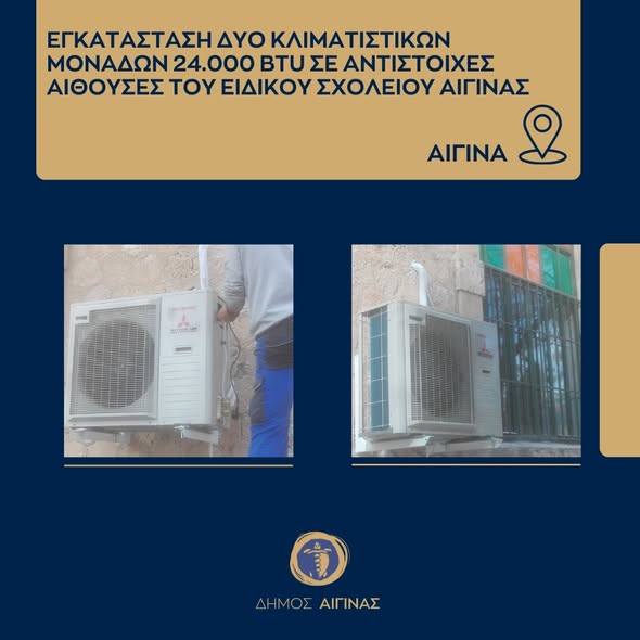 - Eröffnung einer Gemeindestraße zur Versorgung der Bürger und aus Gründen des Zivilschutzes im Gebiet von Agioi, Installation von zwei Klimaanlagen mit einer Leistung von 24.000 BTU in den Räumen der Sonderschule von Aegina.