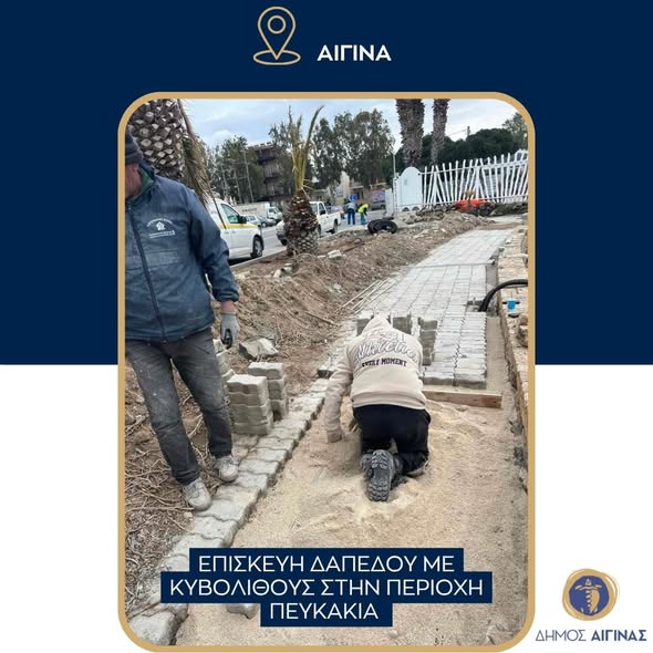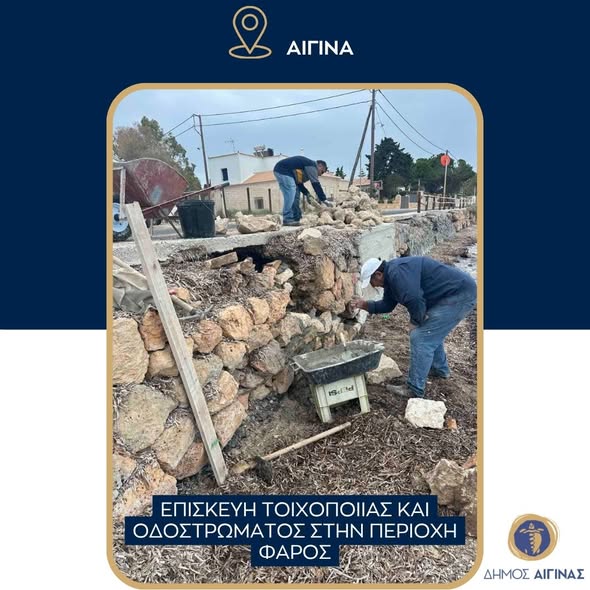 Bau eines barrierefreien Zugangswegs zu den öffentlichen Toiletten auf dem Ethnigeria-Platz in Aegina, Reparatur von Mauerwerk und Straßenbelag im Bereich Faros in Aegina, Reinigung von Wassertanks in den Gemeindebezirken Aegina und Kypseli, Reparatur des Pflasterbodens im Gebiet Pefkakia auf Aegina und Vorbereitung des Ethnikis-Platzes für die Feierlichkeiten zum 25. März 1821 durch Reparaturen und Instandhaltungsarbeiten.