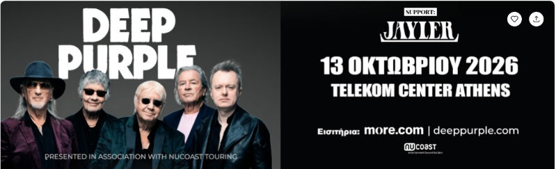Deep Purple kehren am 13. Oktober 2026 ins Telekom Center Athens zurück! Die legendären Deep Purple, die seit mehr als fünf Jahrzehnten den Sound des Rock prägen, gehören nach wie vor zu den international renommiertesten Bands. Special Guest bei ihrem einzigen Auftritt in Athen sind die aufstrebenden Jayler (UK), die eine explosive musikalische Zusammenarbeit schaffen, die die Vergangenheit und die Zukunft des Rock verbindet.