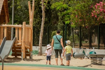 Beide Standorte sind mit Sicherheitsgummiböden, begehbaren Wegen, schattigen Bereichen, Bänken für Eltern und Aufsichtspersonen, Trinkbrunnen, Abfalleimern, Beleuchtung und vollständiger Zugänglichkeit für Kinder mit Behinderungen ausgestattet.
