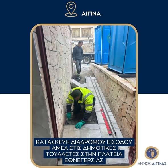 Bau eines barrierefreien Zugangswegs zu den öffentlichen Toiletten auf dem Ethnigeria-Platz in Aegina, Reparatur von Mauerwerk und Straßenbelag im Bereich Faros in Aegina, Reinigung von Wassertanks in den Gemeindebezirken Aegina und Kypseli, Reparatur des Pflasterbodens im Gebiet Pefkakia auf Aegina und Vorbereitung des Ethnikis-Platzes für die Feierlichkeiten zum 25. März 1821 durch Reparaturen und Instandhaltungsarbeiten.